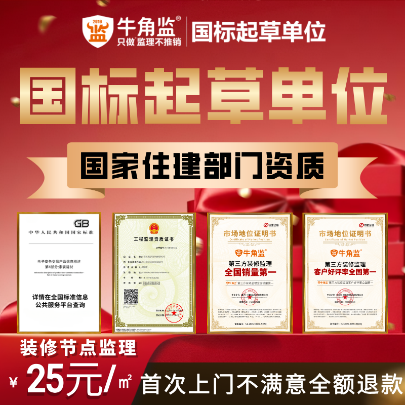 牛角监成立于2016年,以“让天下装修没烦恼”为公司使命,“只做监理不推销”是公司核心原则。牛角监拥有国家级的监理资质,监理服务覆盖了数十城市,已经成为广受行业、消费者的认可和尊重的领头牛企业。