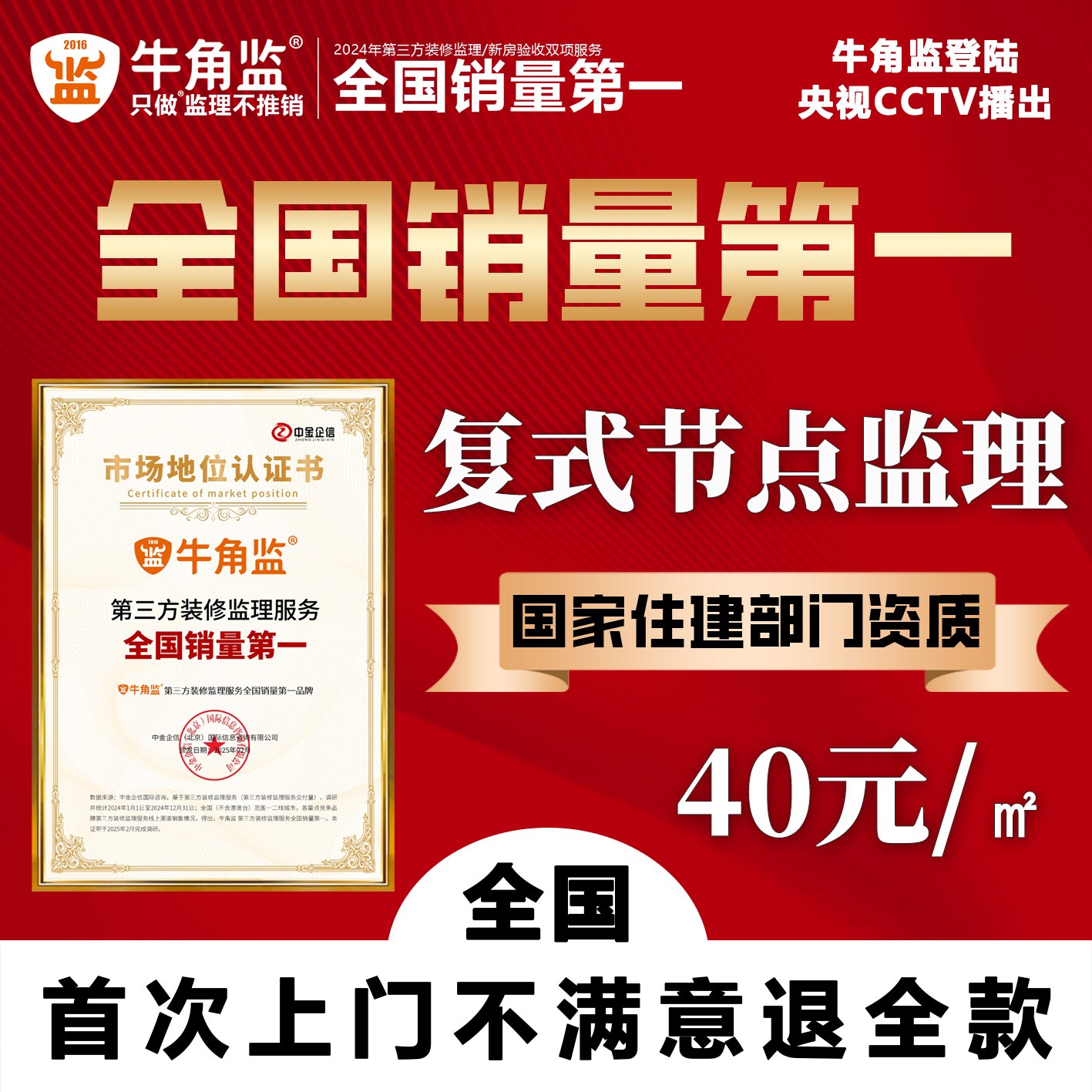 牛角监成立于2016年,以“让天下装修没烦恼”为公司使命,“只做监理不推销”是公司核心原则。牛角监拥有国家级的监理资质,监理服务覆盖了数十城市,已经成为广受行业、消费者的认可和尊重的领头牛企业。