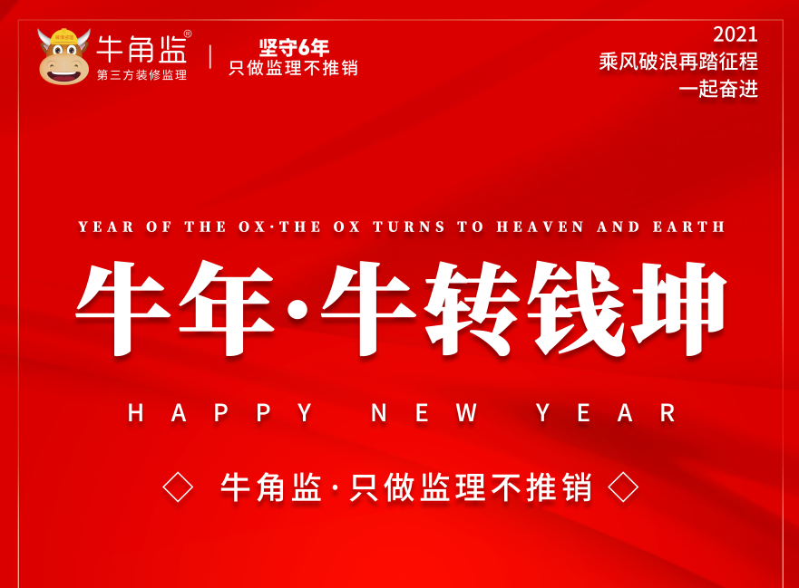 2020是特殊的一年,新冠疫情的阴霾笼罩了整个世界一整年,各行各业、各大小企业都遭受了程度不一的冲击和影响,牛角监作为一家专业的第三方监理企业,自然无法置身事外。不过,尽管在这样相对艰难的大环境下,牛角监依然在2020坚守企业原则,不忘初心,始终把服务质量放在首位,切实保卫装修品质,向广大业主交了一份合格的答卷。